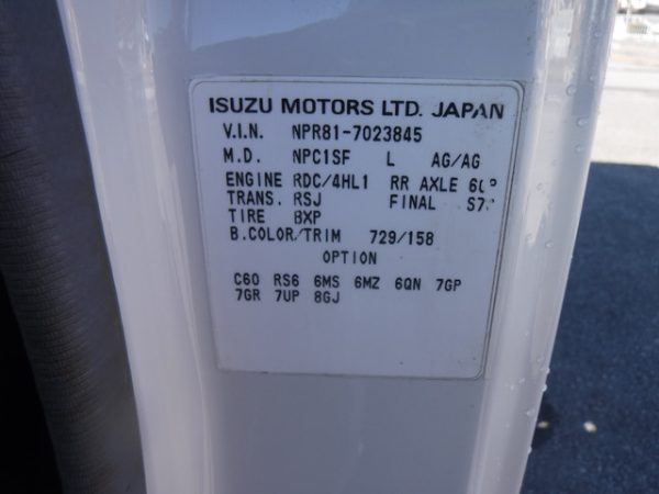 | 型式 | PA-NPR81R | 原動機型式 | 4HL1 | 型式指定番号 | 類別区分 | ||